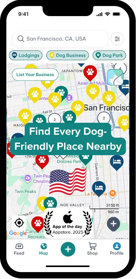 The Map: The interactive map helps you discover dog parks, trails, cafés, beaches, hotels, and services nearby, like vets, or groomers, while at home or while traveling. View park amenities, photos, ratings and reviews, a group chat for each park page, see who's visiting, and plan dog-friendly outings with confidence.