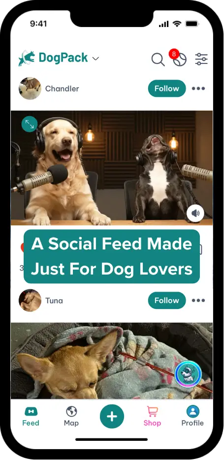 The Feed: The Feed is where dog lovers connect through photos, videos, and updates shared by the community. Our new 'For You' Feed is powered by a smart algorithm that shows you what you want to see. Use our AI-powered filters and backgrounds to create amazing posts. Discover what's happening at nearby parks, cafés, beaches, and events, and engage with other dog owners, trainers, and businesses around the world.